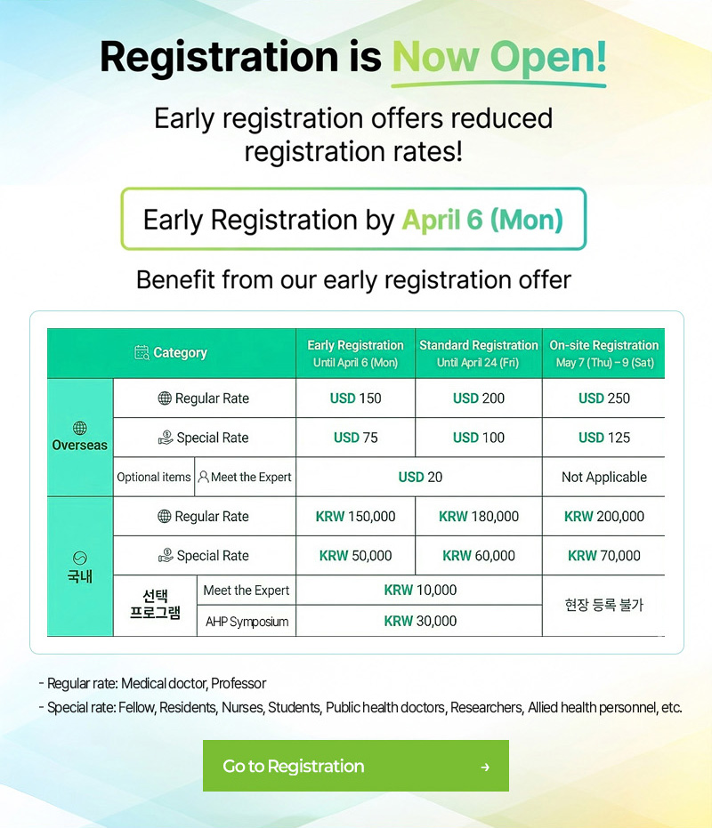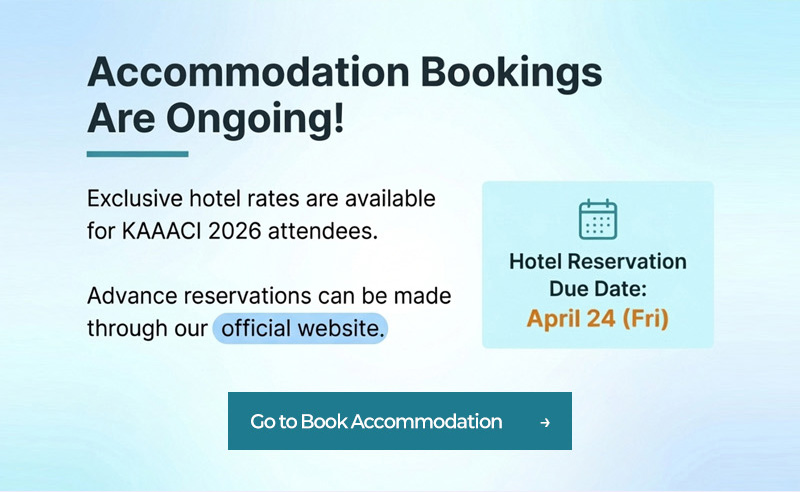 공지사항 [KAAACI 2026] Registration Now Open - Check Out Early Registration Benefits and Scientific Highlights 조회수 : 19 게시일 : 2026-02-26 목록