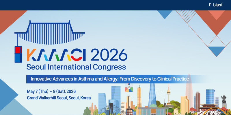 전체 메뉴 학회소개 인사말 학회 역사 & 연혁 미션 & 비전 회칙 임원 위원회 평의원 지회 연구팀 오시는길 학회소식 공지사항 시상내역 분과전문의 자격시험 자료실 천식 E-러닝 자료실 서식 학술지 및 간행 뉴스레터 최신논문소식 교과서 안내 AAIR AARD 천식 및 알레르기 학술행사 행사일정 국외학술대회 신청 국내학술대회 행사등록 역대학술대회 포토갤러리 진료지침 진료지침 개발 중 진료지침 일반인정보 아토피 천식 교육 정보센터 알레르기 전문병원 검색 알레르기 정보 대한천식알레르기학회 리포트 Membership / My Page 로그인 아이디 / 비밀번호 찾기 회원가입 안내 개인정보취급방침 메뉴 닫기
