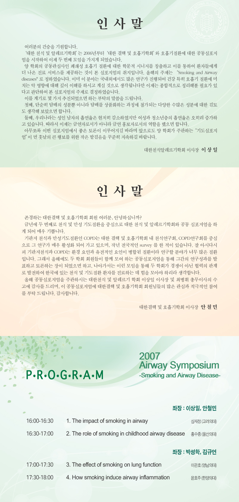 * 주최 : 대한천식 및 알레르기학회, 대한결핵 및 호흡기학회