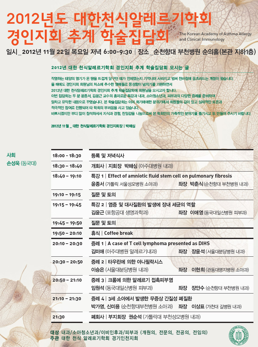 | 2012년도 대한천식알레르기학회 경인지회 추계 학술집담회 |