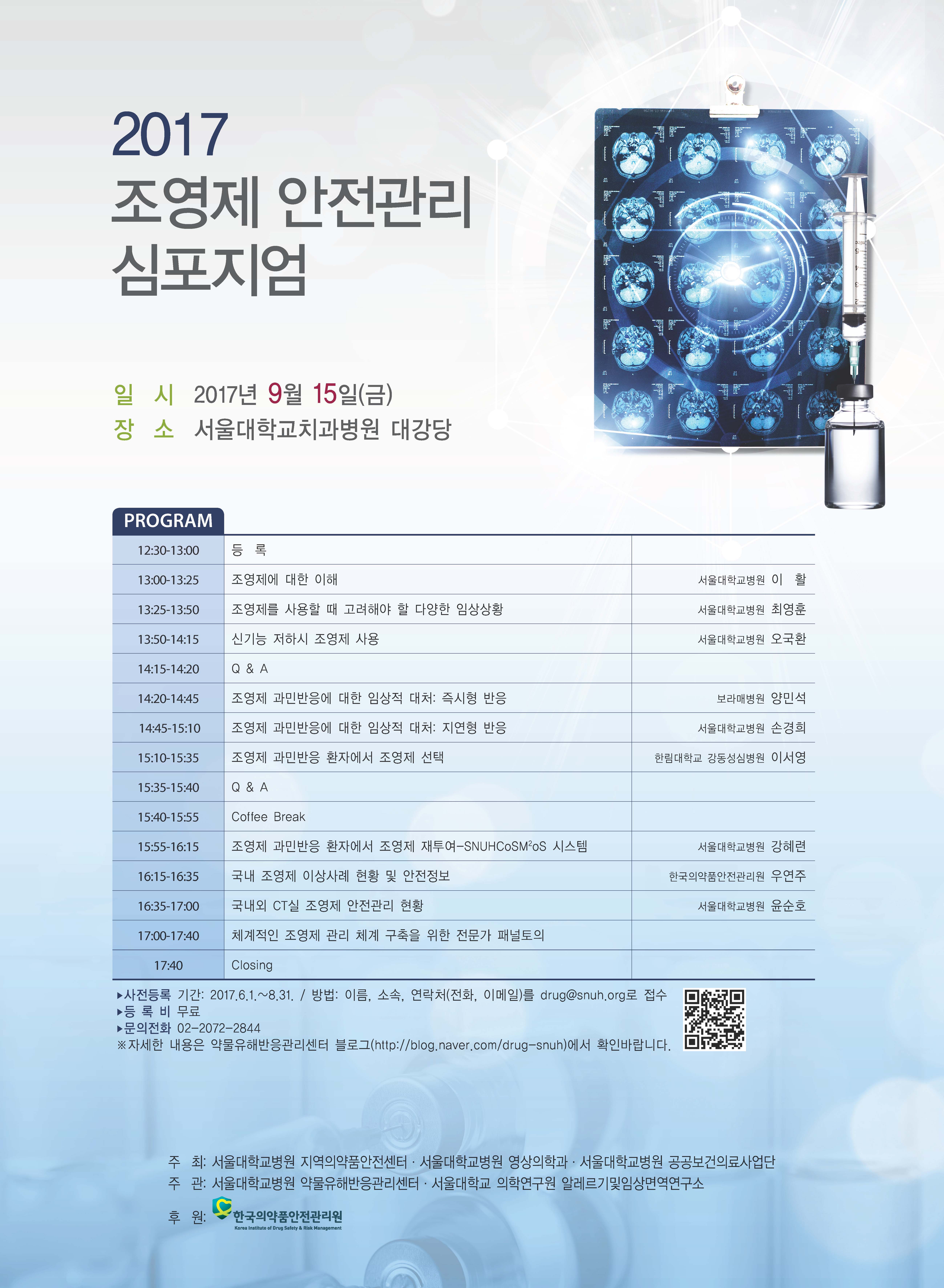 2017년 9월 15일 "제 3회 조영제 안전관리 과정 심포지엄"을 개최합니다.