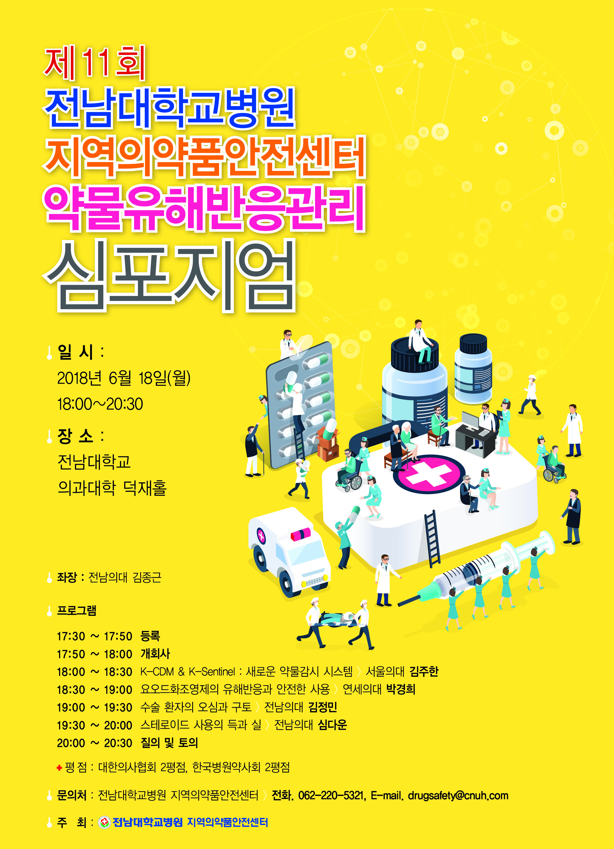 전남대학교병원 지역의약품안전센터에서 "약물유해반응관리 심포지엄"을 아래와 같이 개최합니다.