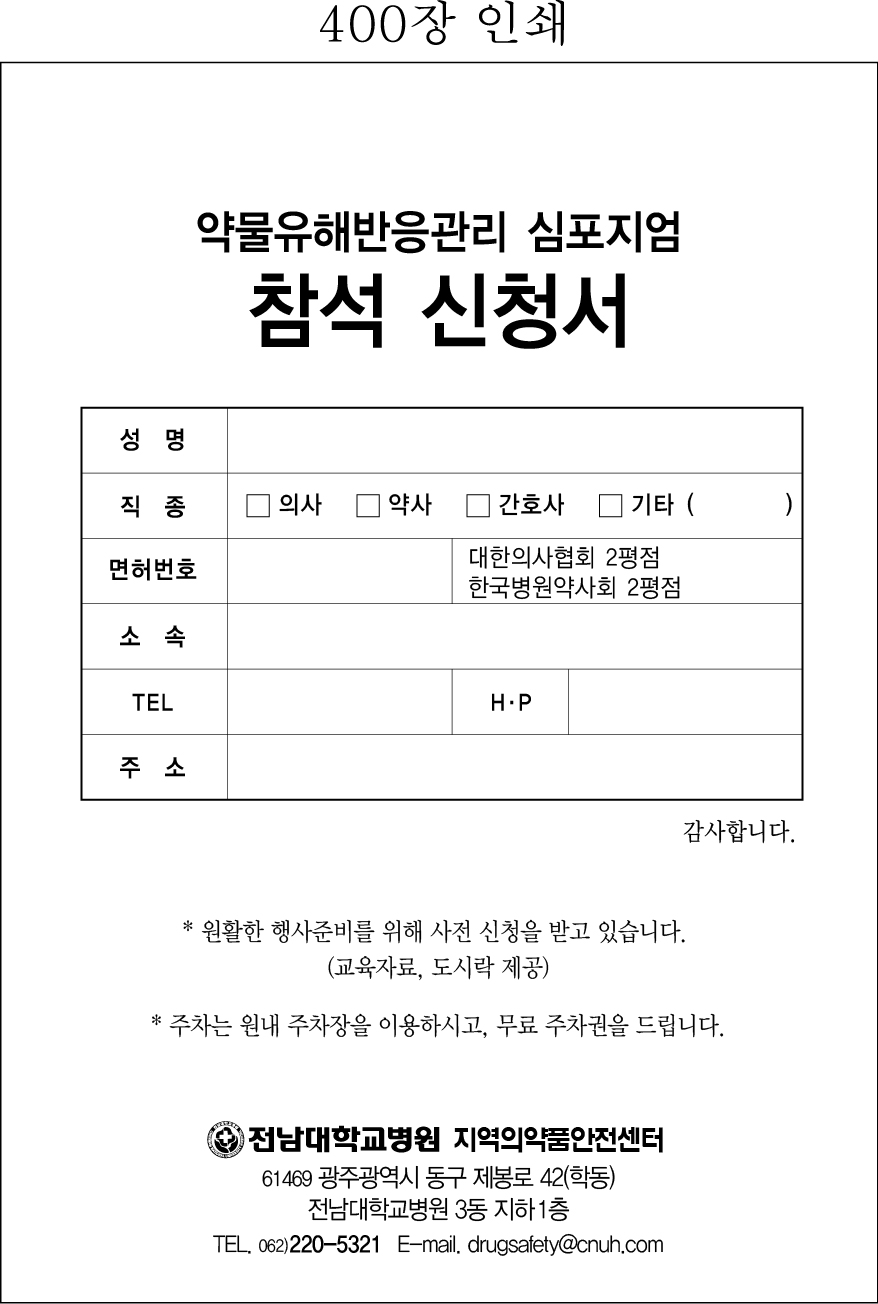 ○ 문 의 : 전남대학교병원 지역의약품안전센터