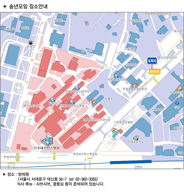 공지사항 12/16 제121회 서울지회 집담회 안내 조회수 : 2,466 게시일 : 2008-11-21 이번 서울지회에서는 증례토의 없이 오후 6시30분부터 1시간동안 특강만으로 이루어지며, 특강이 끝난 후 오후 8시부터 연세대학교 근처에 있는 "방비원"이라는 장소에서 송년모임을 가질 예정입니다. 시간 관계상 특강에 참석하지 못하시는 선생님께서는 첨부파일에 있는 장소로 직접 오셔도 되겠습니다. 많은 참석 부탁드립니다. 6:30-7:30 특강 : Medicine in Art 한성구 (서울의대 호흡기내과) 송년모임장소안내.jpg (다운로드 : 136회) 목록