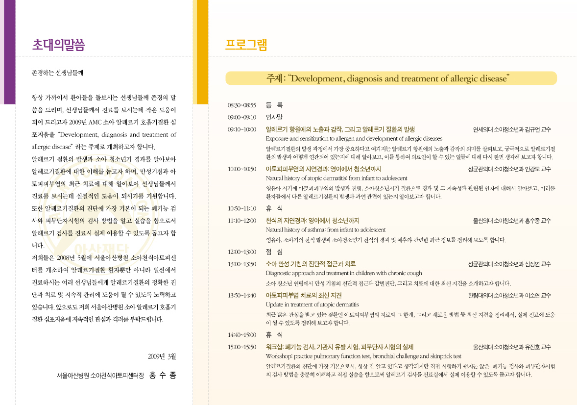 공지사항 3/1 제6회 AMC소아알레르기 호흡기질환 심포지움 안내 조회수 : 3,479 게시일 : 2009-01-22 팜플렛.jpg (다운로드 : 162회) 팜를렛내지.jpg (다운로드 : 171회) 목록