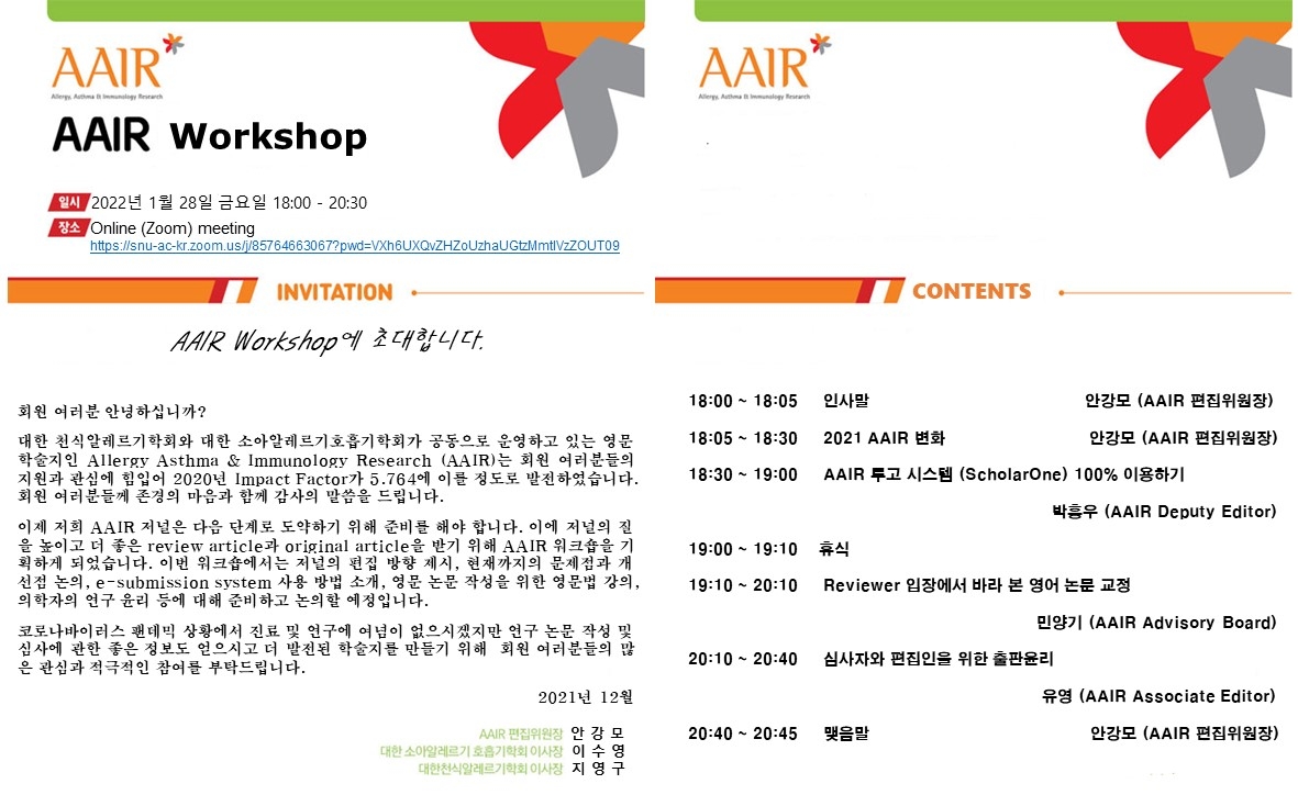 대한천식알레르기학회는 정보통신망법 제50조의 2, 제50조의 7 등에 의거하여, 대한천식알레르기학회가 운영,관리하는 웹페이지상에서, 이메일 주소 수집 프로그램이나 그 밖의 기술적 장치 등을 이용하여 이메일 주소를 무단으로 수집하는 행위를 거부합니다.