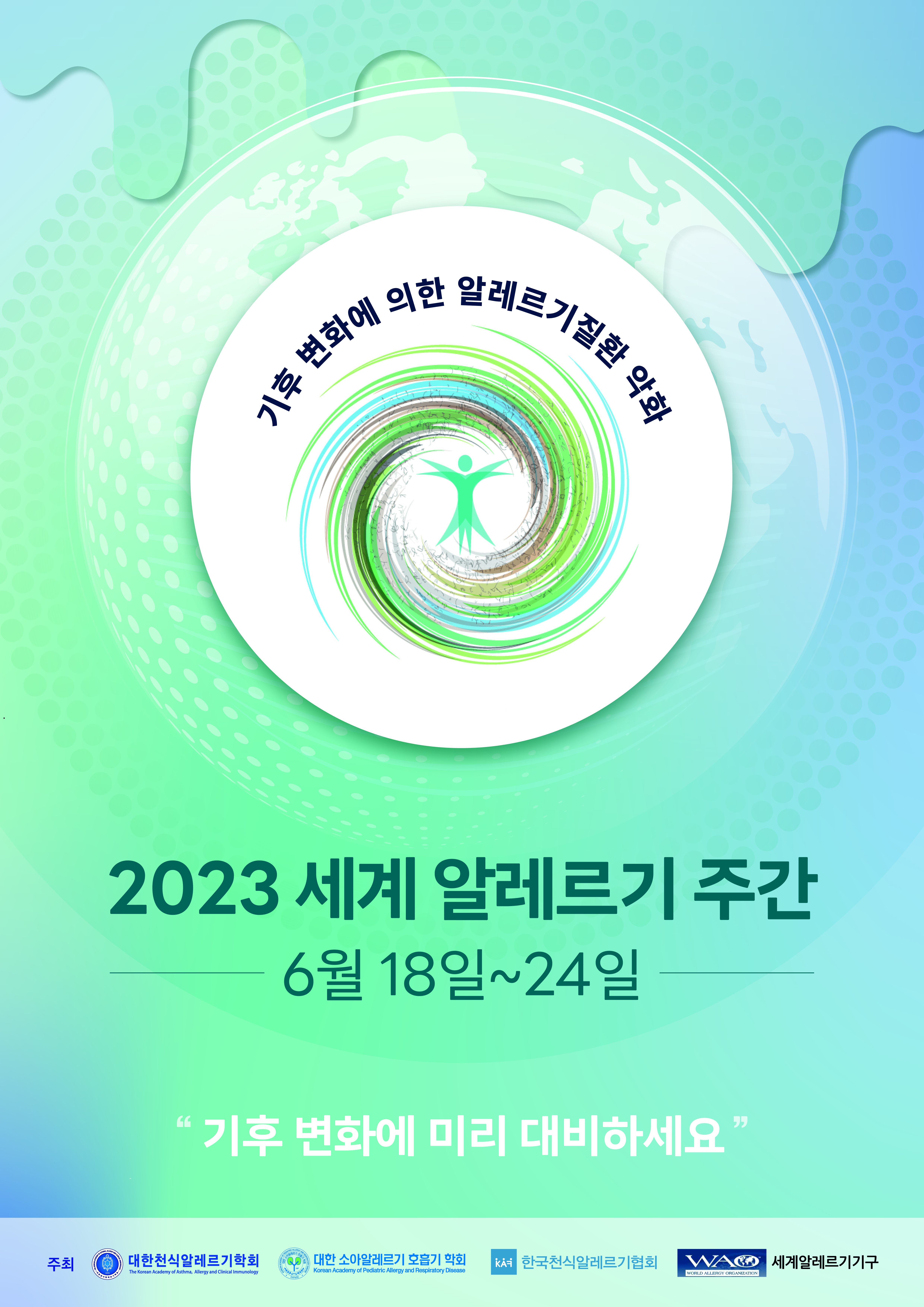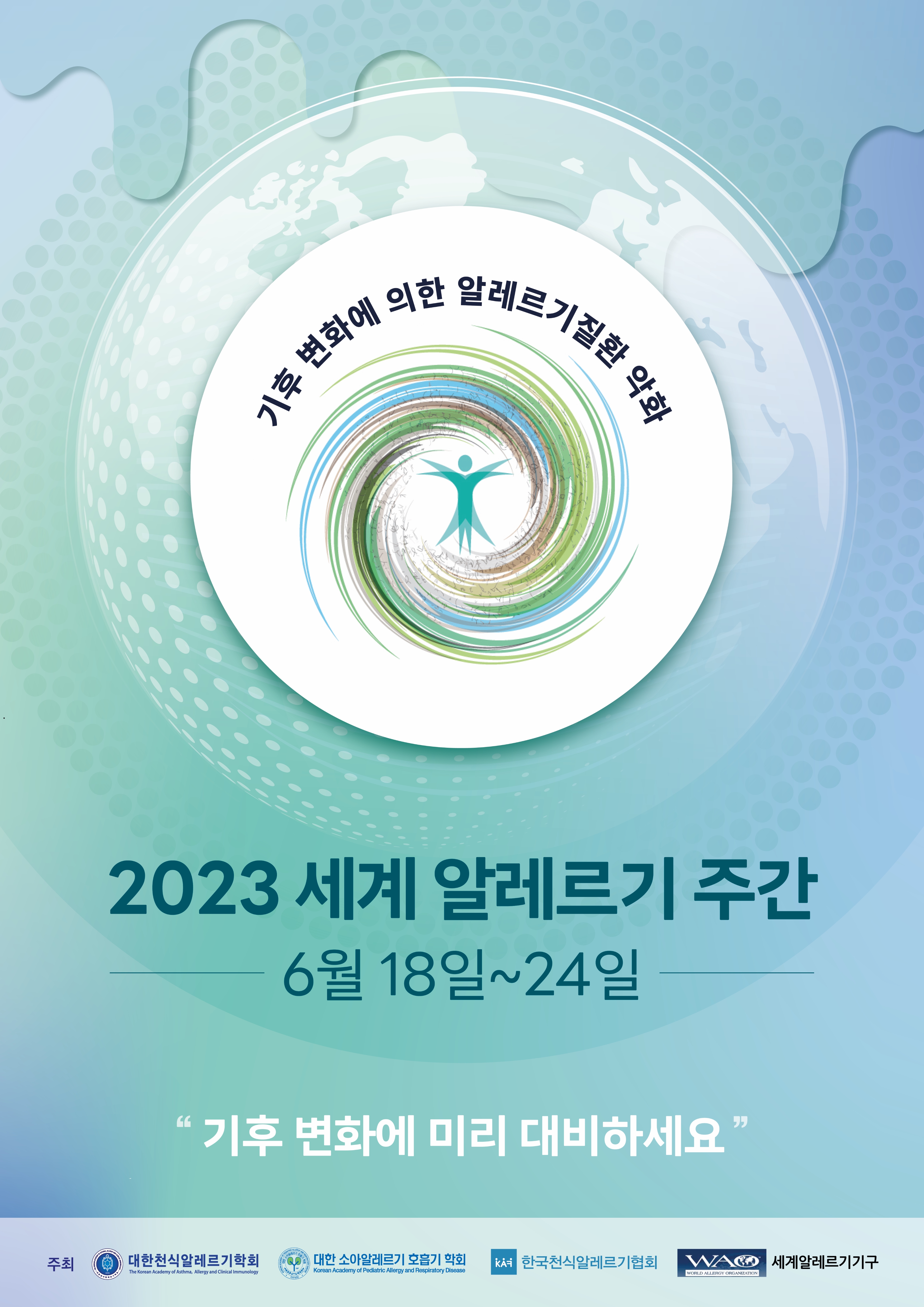 이번 주간은 기후변화에 의해 알레르기질환이 악화될 수 있다는 내용을 담고 있으며 이를 미리 대비하여야 하는 알레르기 전문의 역할을 알리고자 하는 캠페인입니다.