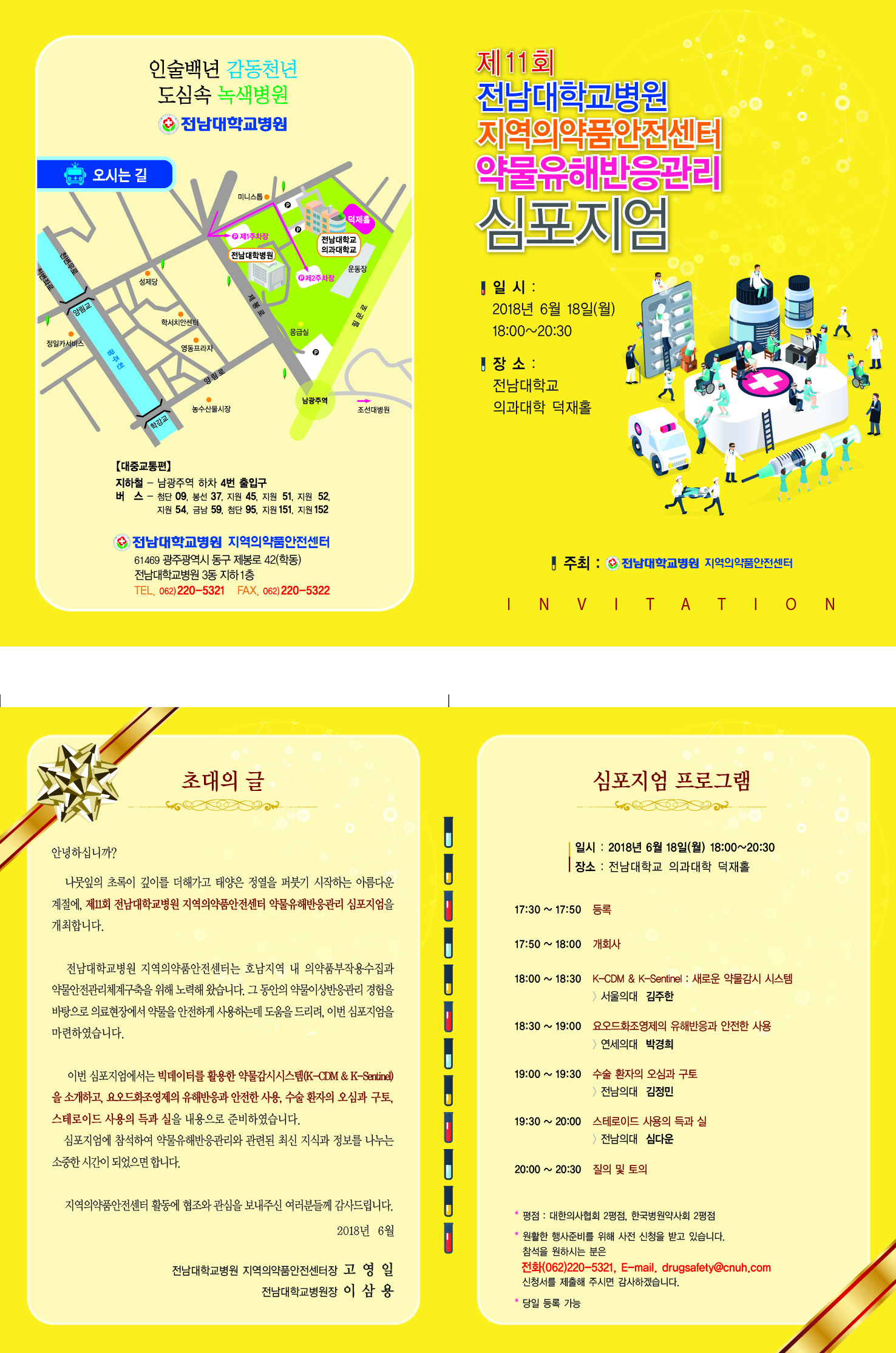 전남대학교병원 지역의약품안전센터에서 "약물유해반응관리 심포지엄"을 아래와 같이 개최합니다.