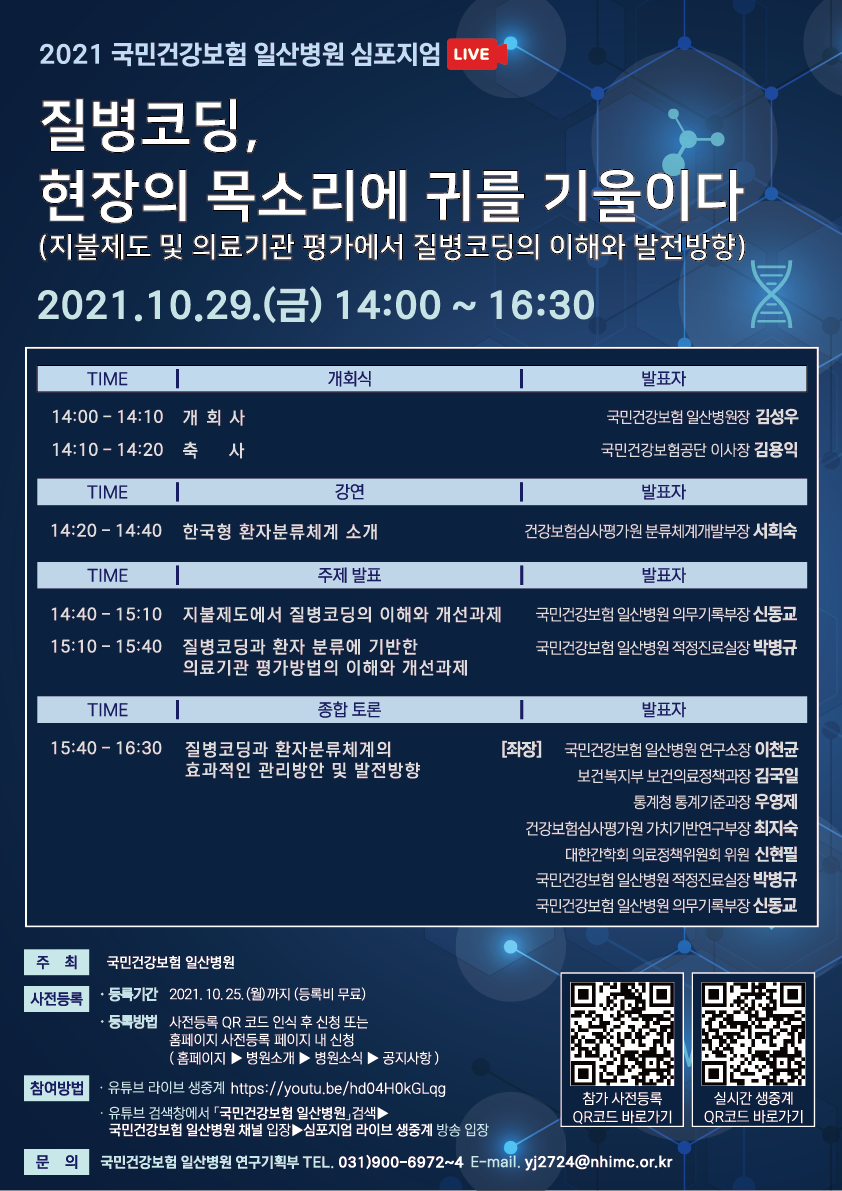 -「포스터내 실시간 생중계 QR코드 활용」또는「유튜브 검색창 ‘국민건강보험 일산