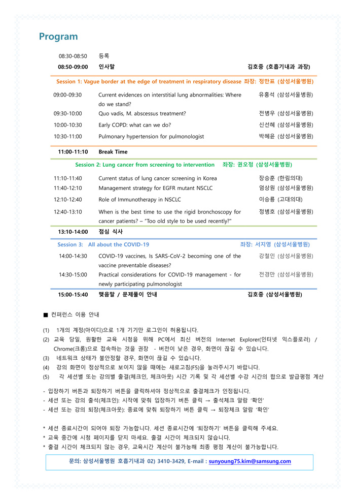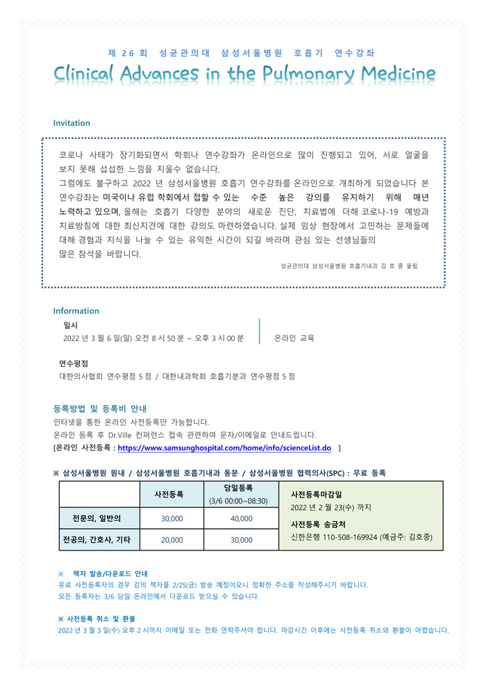 유관기관 제26회 성균관의대 삼성서울병원 호흡기 연수강좌