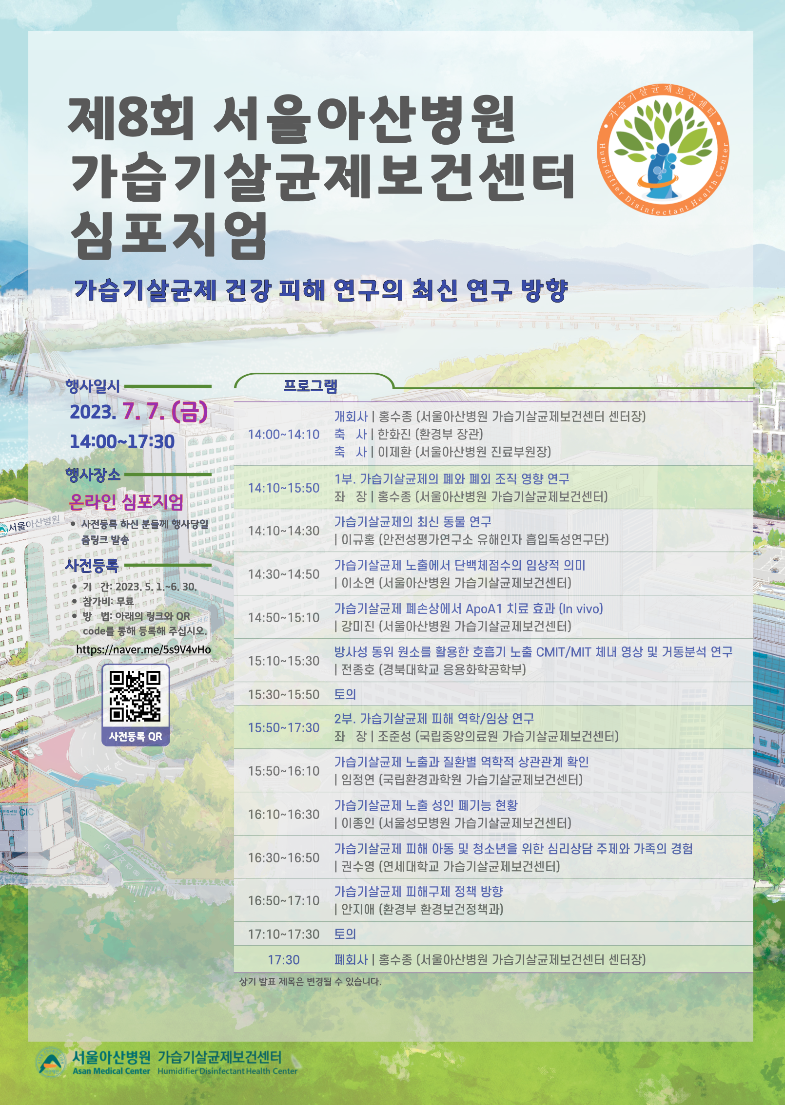 유관기관 제8회 서울아산병원 가습기살균제보건센터 심포지엄 (7/7, 금)