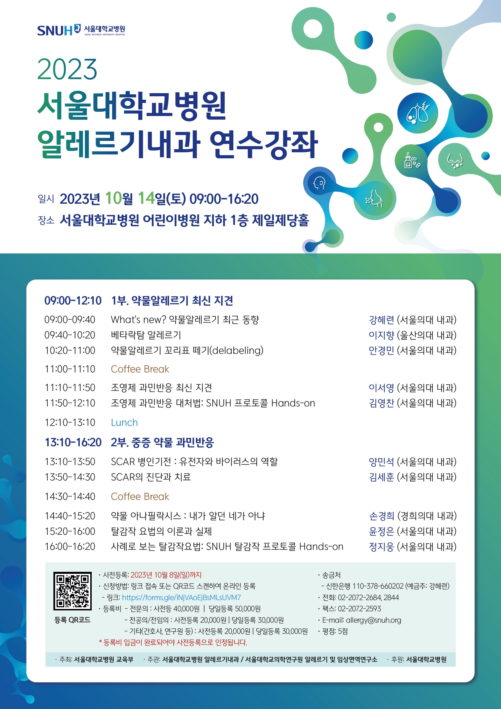 유관기관 2023 서울대학교병원 알레르기내과 연수강좌 조회수 : 534 게시일 : 2023-08-30 [포스터] 2023년 서울대학교병원 알레르기내과 연수강좌(최종).pdf (다운로드 : 132회) 목록