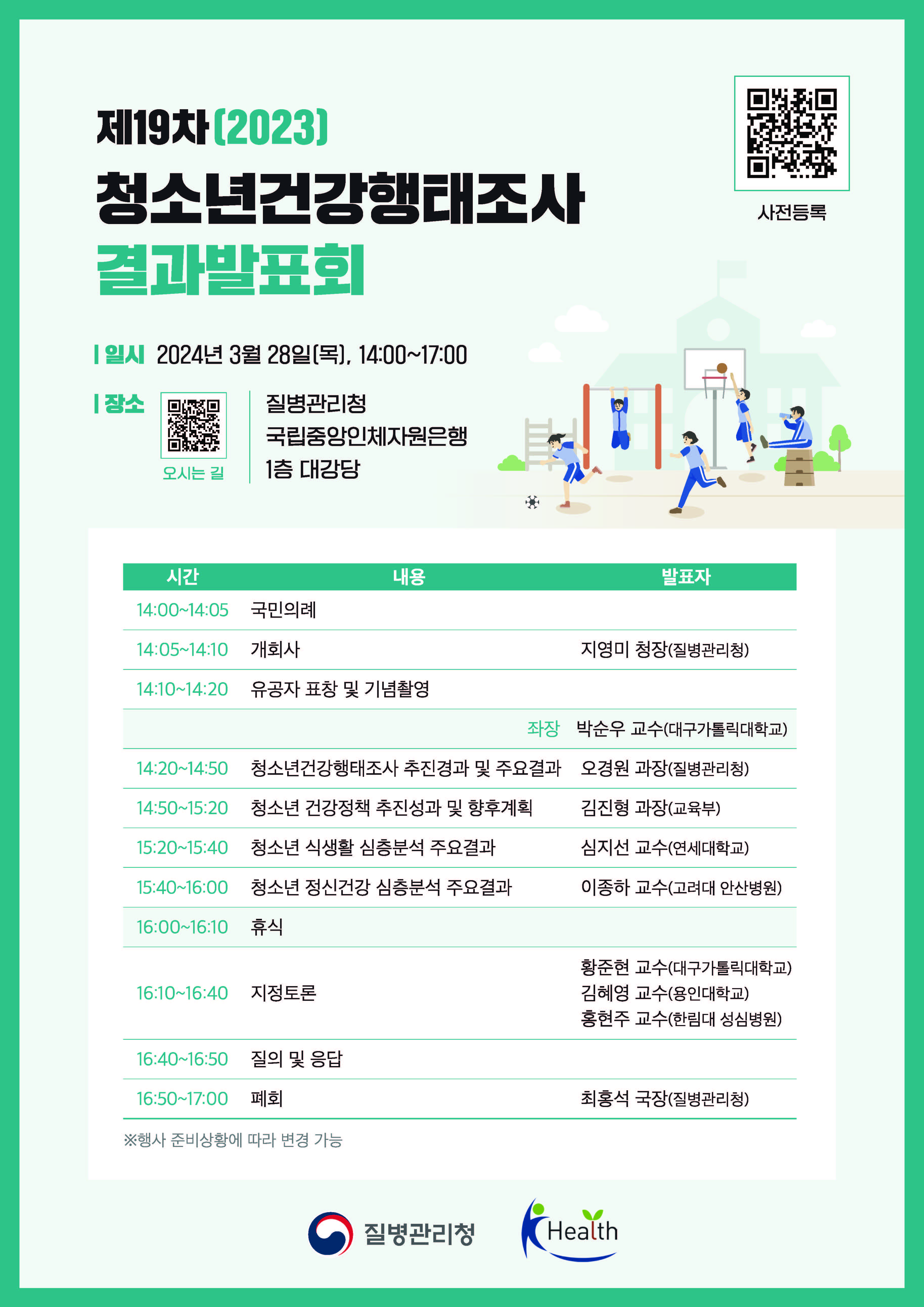 ○ 행사명: 제19차(2023년) 청소년건강행태조사 결과발표회