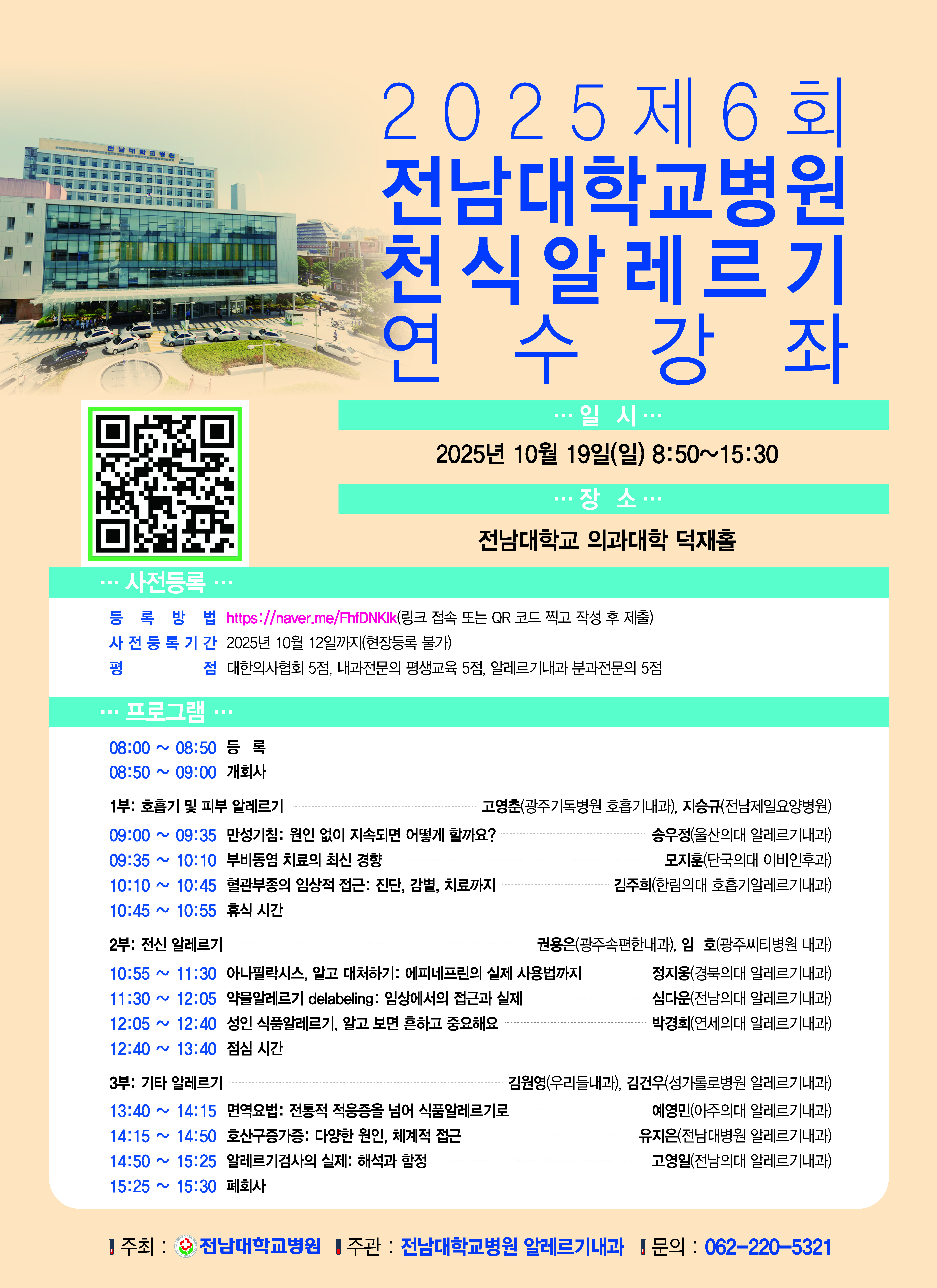 제6회 전남대학교병원 천식알레르기 연수강좌_10월 19일(일요일)